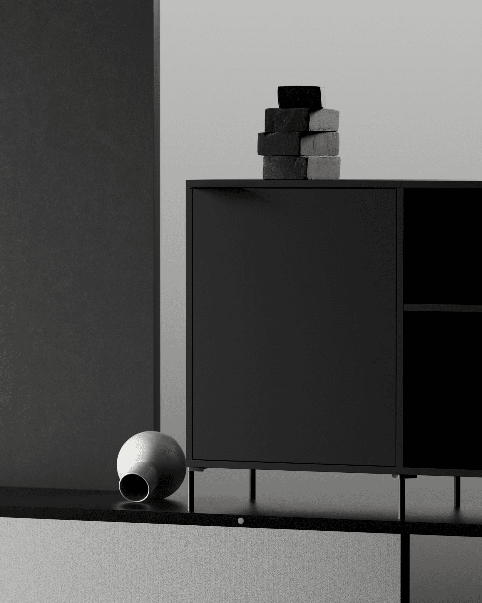 We chose a minimal design so the furniture stays center stage, using one main brand color with subtle accent tones to guide the film through product views, fittings, details, and construction. The contrast between black and white feels balanced, while small color highlights and organic, off-frame elements soften the strict lines. This concept was one of our very first ideas and made it into the final film, thanks to the open and collaborative team at Tylko.