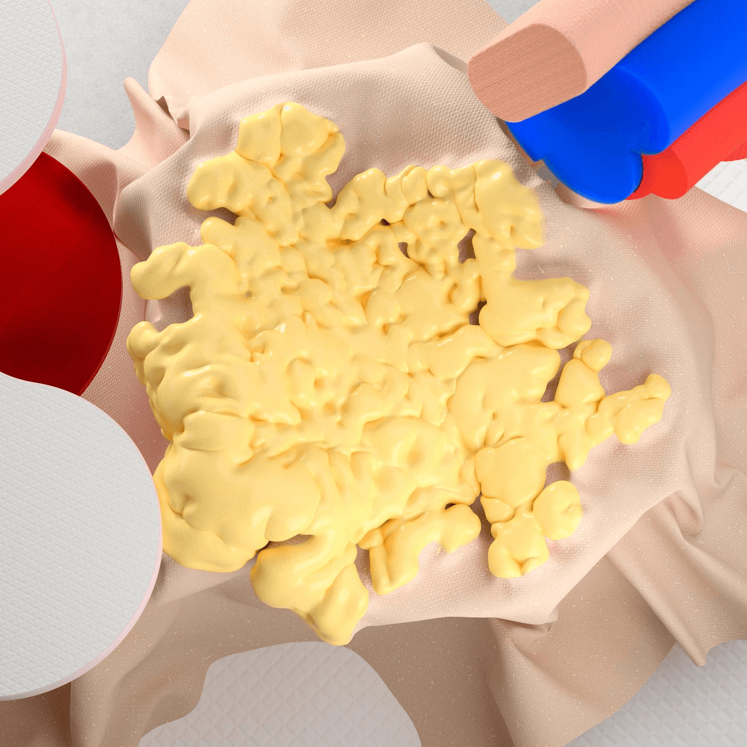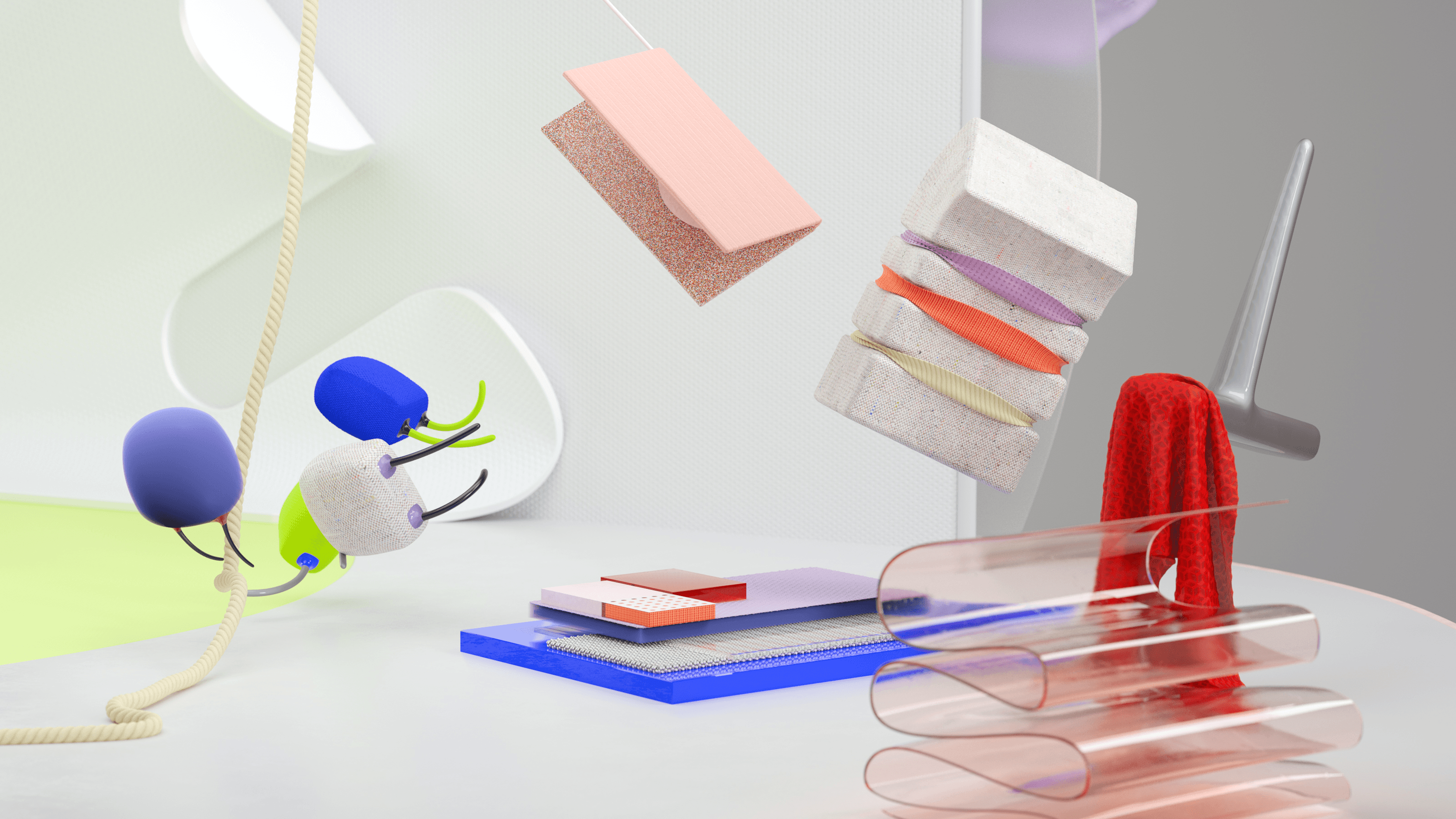 A german engineering company approached us to create a playful material world for a trade show in Germany. We love to work with textures and always challenge us to find the right balance between reality and abstraction. We were more than happy to develop shapes, spaces and colours where the textures become alive.